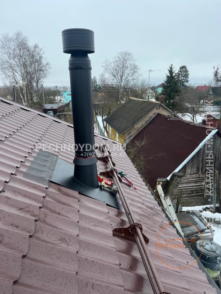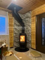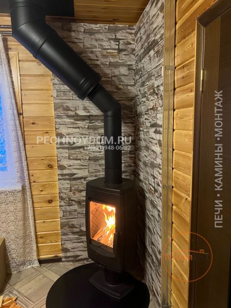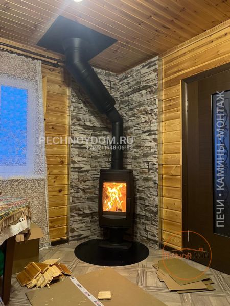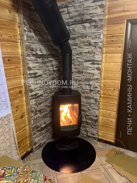 Установили печь-камин Aria Plamen, дымоход Вулкан aisi 321 стандартный, разгон трубы КПД 2 мм.