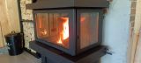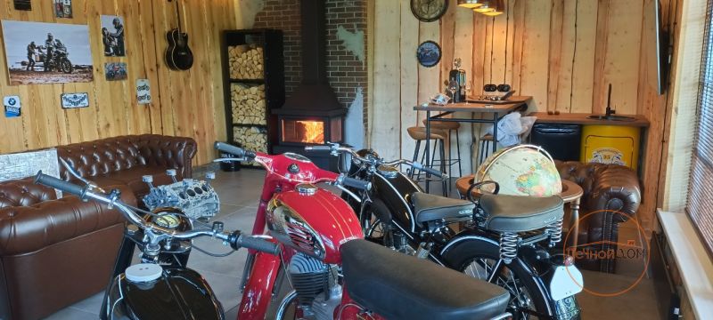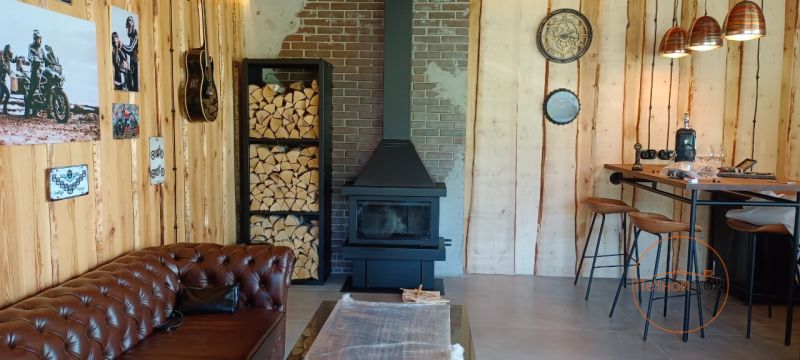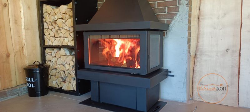 Наши специалисты установили испанский трехсторонний камин производства Rocal в дизайнерском помещении стилизованном под гараж раритетных мотоциклов) Установка в г. Зеленогорск. Камин укомплектован дымоходом Вулкан из стали aisi 321.