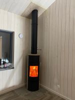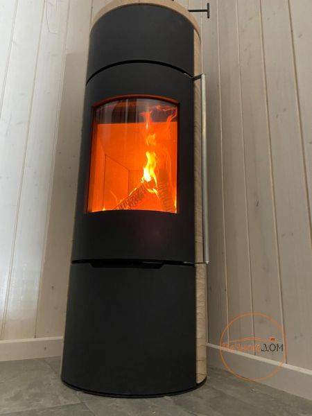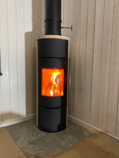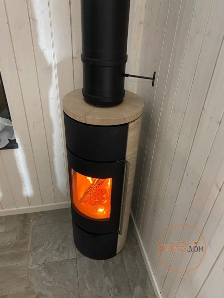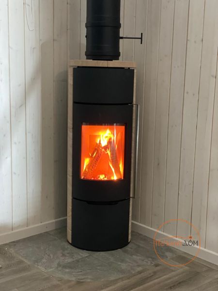 Установили вертикальную печь-камин Астов R1 LK в облицовке Песчаник. Дымоход Вулкан Cerablanket. Декоративный фланец отделан пробкой. Данная печка имеет вторичный дожиг, подачу воздуха из вне, дымоход можно подключить как сверху, так и сзади. На печку бесплатная доставка доставка до 50 км по ЛО