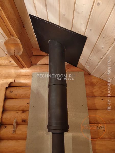 Выполнили монтаж чугунной печки Дача от производителя FireWay с верхним подключением дымохода Вулкан.