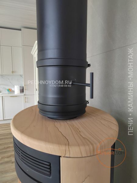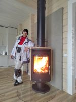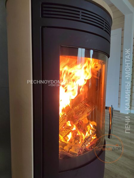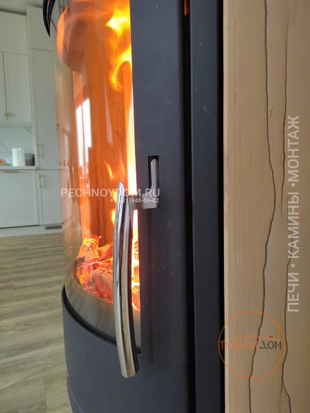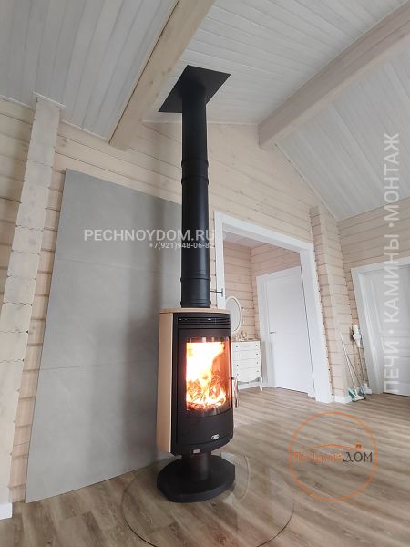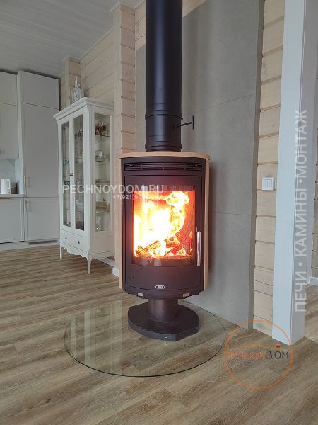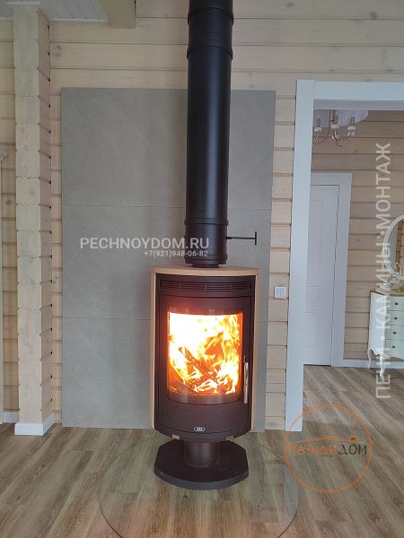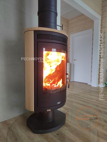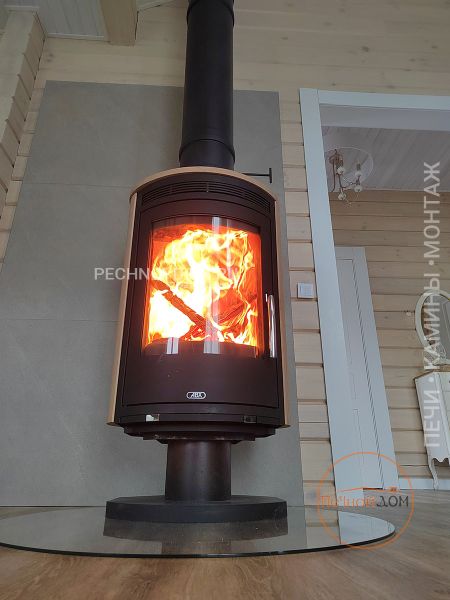 Установили поворотную печь-камин Арктис 8 от чешской компании ABX. Печи этого производителя отличаются невероятной долговечностью. Печь имеет систему двойного дожига и чистого стекла и оснащена поворотным механизмом. Её можно установить практически в любом месте помещения. Корпус печи облицован натуральным камнем песчанником. Легко и быстро обогревает помещения от 160 до 220 м3.
