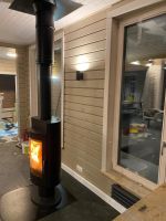 2 Печь-камин Миляна установлена в Гатчинском районе в Новом Поддубье в комплектации с дымоходом Вулкан.