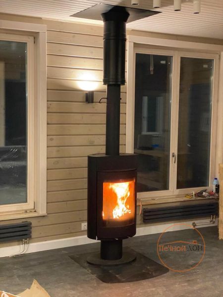 1 . Установили печь Миляна в комплектации с дымоходом Вулкан в поселке Соловьево ЛО. Это вращающийся печь камин на ножке и можно разворачивать его в любую сторону, для любования живым пламенем. Печь изготовлена из стали, топится дровами и брикетами. Заказать можно на нашем сайте https://www.pechnoydom.ru/products/pech-kamin-milyana-ski-400-dv