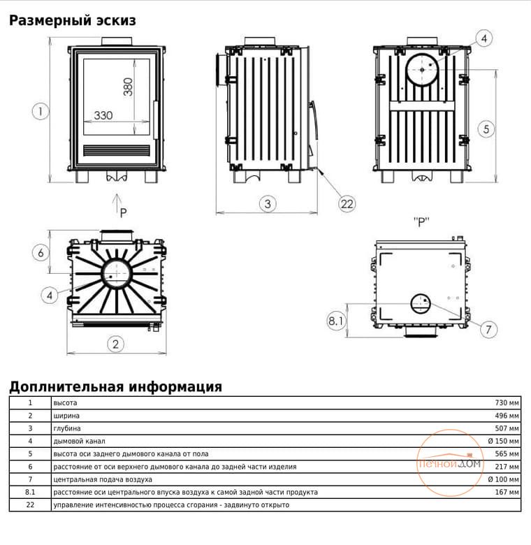 Топка чугунная York имеет прямоугольный корпус и воздушные регуляторы, позволяющие управлять процессом горения. Как и все чугунные топки для каминов, модель York требует последующей облицовки природным камнем: гранитом, песчаником, талькохлоридом или мрамором.