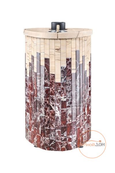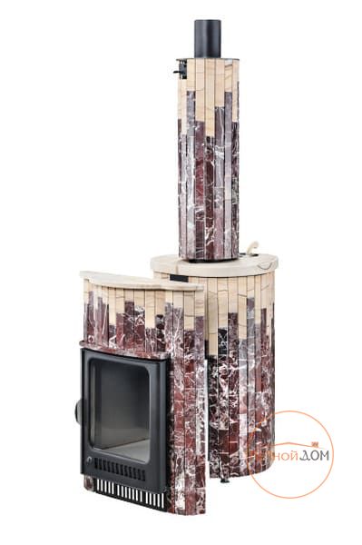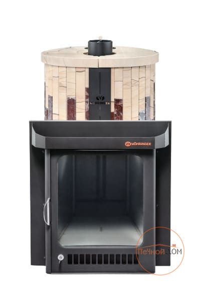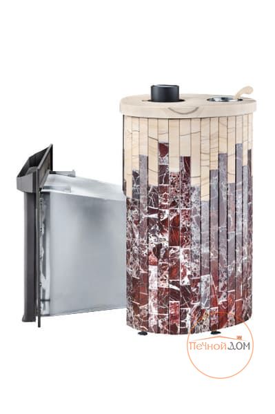 Облицовка печи – ламели из натурального камня, установленные вокруг всего корпуса. Камень блокирует распространение инфракрасного излучения, защищает парильщиков от случайного прикосновения к раскаленному металлу топки. Производство ламелей ведется по собственной запатентованной технологии завода Vöhringer.