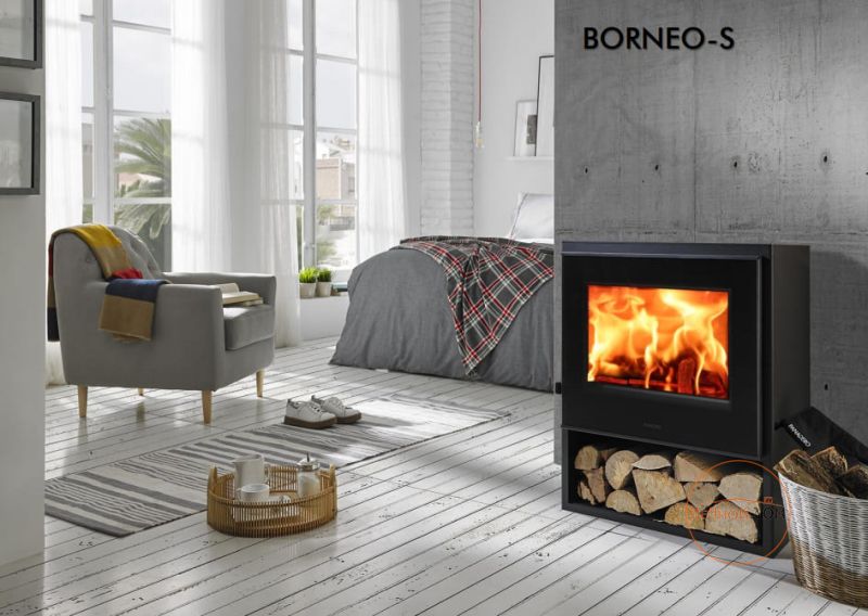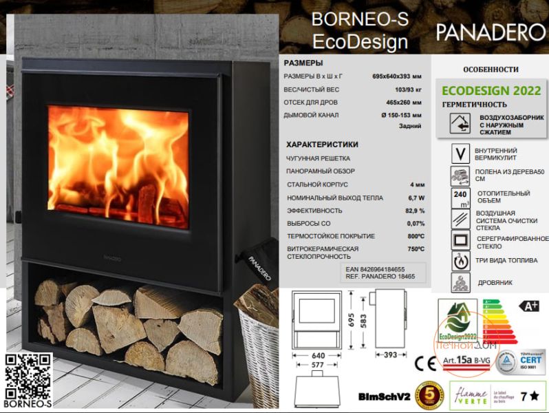 Panadero Borneo-S - достаточно мощная печь для отапливания загородного дома объемом до 240 куб.м. В качестве основого материала используется качественная сталь с защитным покрытием черного цвета. Производительная топка дает гарантию хорошего отопления. На дверце установлено прозрачное стекло, устойчивое к температурным перепадам. Внизу предусмотрен отсек с дверцей для хранения необходимого запаса дров.