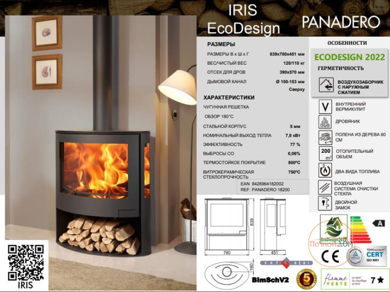 Печь-камин Panadero Iris — это дровяная топка, выполненная из стали с покрытием огнеустойчивой эмалью чёрного цвета. Она сочетает в себе стиль, экологичность и практичность, создавая атмосферу уюта в загородном доме или коттедже.