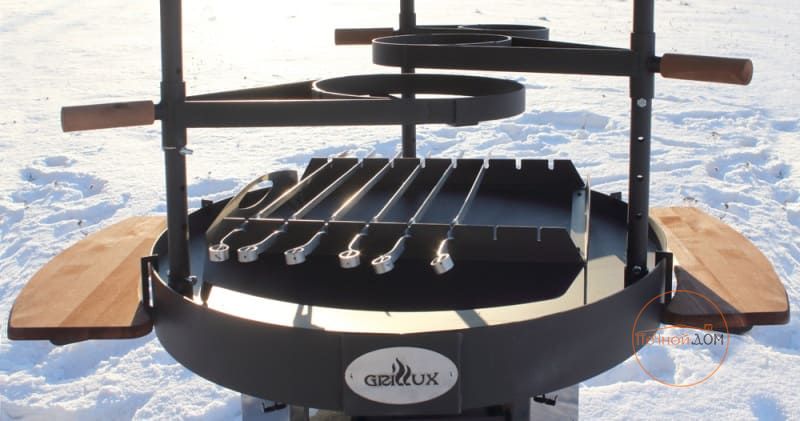 Почему, например, не порадовать себя ароматным шашлыком или настоящим восточным пловом? У Suomi Grill 90 есть решетка для шампуров и подставка под казан, а также зольный ящик, который облегчает очистку гриля от золы. Все элементы гриля выполнены из высококачественной стали толщиной в 1, 2 или 3 мм , выкрашенной термостойкой краской , и без труда снимаются, если после ужина захочется просто посидеть возле горящего очага. В нашем уютном магазине вы приобретете Suomi Grill 90 качественного отечественного производства под брендом Grillux с возможной доставкой до Вашего дома, по очень выгодной цене. Готовьте сочные блюда, на дровах, угле, летом, и даже зимой, в семейном кругу и с друзьями! Для вас нет ничего невозможного с неповторимым финским грилем Suomi Grill 90!