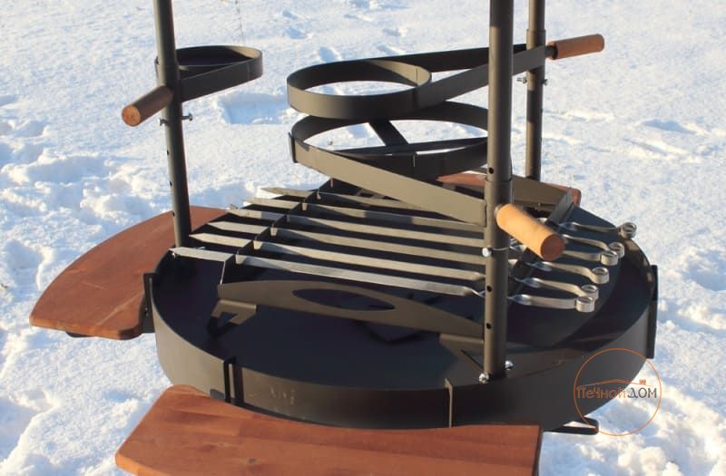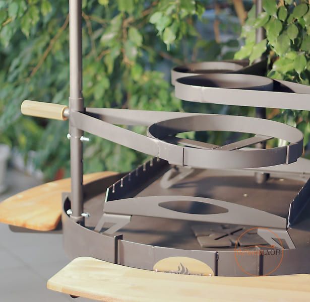 Стильный, стационарный гриль Suomi Grill 90 – великолепный аналог классического финского гриля российского производства. Эту популярную модель обожают в Европе за ее многофункциональность и практичный дизайн. С финским грилем Suomi 90 можно в любую погоду устроить барбекю-вечер под открытым небом, ведь металлическая купольная крыша с зонтом надежно предохраняет угли и шашлык от дождя и ветра. Также гриль можно поставить на веранду, в гриль-беседку или просто на террасу загородного дома. Используя три поворотных элемента, легко приготовить сразу много разных блюд для большой семьи или внезапно заглянувшей компании приятелей. Подвесные деревянные столешницы существенно помогают в процессе готовки – вся нужная посуда и ингредиенты у повара теперь под рукой. Какой открывается простор для кулинарного творчества! Возможны разные варианты поставки с цветом купола черный, либо антик медь.