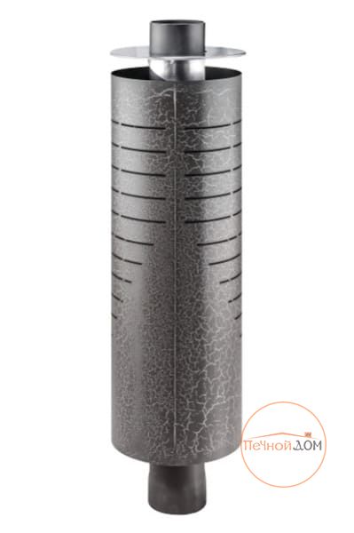 Встроенные каналы распределяют потоки воздуха, забирая холодный воздух в нижней части дымохода, нагревая его и отдавая в верхней части с помощью регулятора. В конструкцию дымохода встроен бак-теплообменник цилиндрической формы (объем - 2,8 литра) из жаропрочной нержавеющей стали толщиной 1 мм. Эффективно использует отходящее тепло от печи, нагревает воду и обеспечивает конвекцию воздуха в парильном помещении. Снабжен шибером, который предназначен для регулировки тяги и обеспечения процесса горения в печах. Надежно фиксируется в заданном положении.