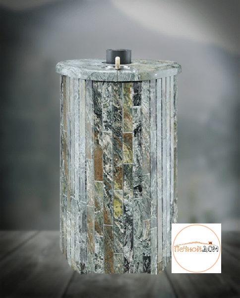 Облицовка печи – ламели из натурального камня, установленные вокруг всего корпуса. Камень блокирует распространение инфракрасного излучения, защищает парильщиков от случайного прикосновения к раскаленному металлу топки. Производство ламелей ведется по собственной запатентованной технологии завода Vöhringer.