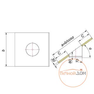 Фланец несет в основном декоративное значение. Предназначен закрыть проходной узел для дымохода через перекрытие и кровлю.
