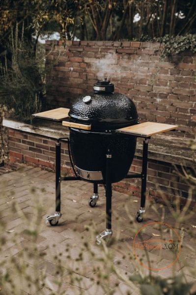 В стандартный комплект поставки грилей Monolith входят ножки с колесиками, а так же все приспособления для использования гриля во всех возможных режимах работы: жароотсекатель и противень из керамики, решетка из нержавеющей стали, второй уровень решетки и специальные приспособление для подачи арома-щепы без открывания крышки гриля.
