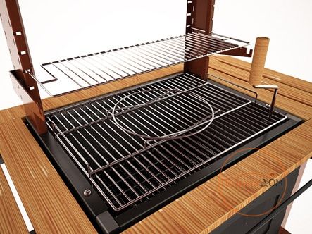 Жаровня гриля Suomi Grill Table укомплектована модулем для приготовления пищи на ольховых щепках а так же решеткой и шашлычным модулем. Корпус крыши имеет двойные стенки, топка сделанна из жаропрочного стекла. Так же есть вариант с крышей Гриль Suomi Grill.