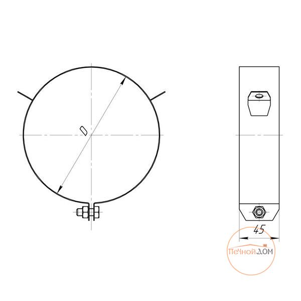 Хомут под растяжки на трубу с изоляцией. Изготовлен из нержавеющей стали AISI 439, толщиной 0.5 мм.