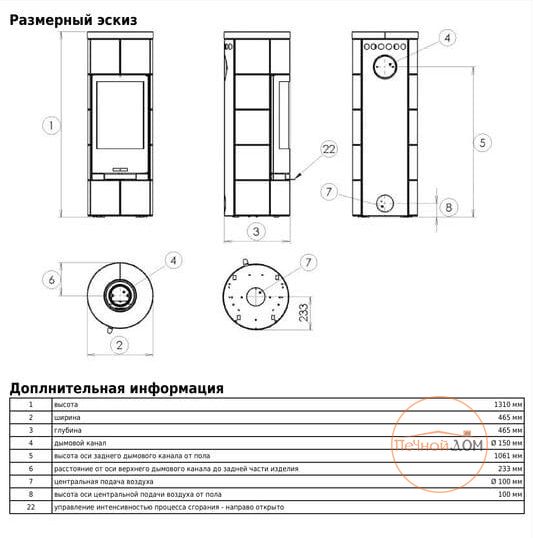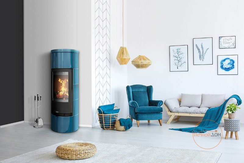 Печь камин ABX KASTILIE цвет аквамарин – это современная кафельная европейская модель, предназначенная для работы на сухих дровах лиственных пород дерева или брикетах. Максимальная длина поленьев для загрузки в топку 280 мм. Эта компактная круглая печь очень популярна, так как занимает небольшую площадь комнаты, тем не менее, её мощность достаточна для обогрева помещения объемом от 60 до 200 кубических метров. Топка печи выполнена из долговечной и высококачественной стали, а через большое панорамное стекло удобно присматривать за огнем и любоваться играми пламени. Огнеупорное стекло (стеклокерамика) выдерживает температуру до 750 градусов. Вес печи в 145 кг, позволяет устанавливать её без отдельного фундамента. Кафельная облицовка печи очень долговечна, не подвержена старению и выдерживает высокие перепады температур. Вермикулитная облицовка дна и стенок топки предохраняет сварную конструкцию от воздействия тепловой нагрузки. Топка печи имеет систему вторичного и третичного дожига. Главная особенность системы вторичного дожига заключается в следующем, сначала сгорают дрова, а затем остаточные продукты горения, это дымовые газы с твердыми частицами. Уменьшая приток воздуха или увеличивая его подачу, можно добиться оптимальной интенсивности горения. Система вторичного дожига позволяет существенно снизить отложения сажи на стенках топки и дымохода, повышая теплоотдачу и способствуя экономии дров, к тому же вторичный дожиг смотрится очень красиво, его сравнивают с северным сиянием. Печь камин ABX KASTILIE – по волшебному преображает привычные домашние декорации, добавляя загадочности и уюта, а изменчивые огненные языки пламени за стеклянной панорамной дверцей печи, не только обогревают помещение, но отражаются на стенах, представляя театр теней у вас дома. Различные варианты цветовых исполнений камина, позволят подобрать вариант, который наиболее гармонично впишется в современной интерьер помещения. Печь камин настолько качественно сделана, что компания производитель ABX даёт на неё гарантию 5 лет.
