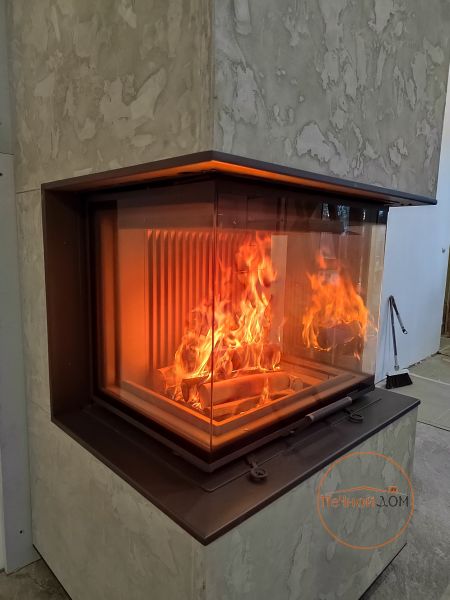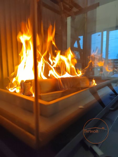 Номинальная теплопроизводительность устройства 8 кВт. Оптимальный объём зала 200 м3. Вы будете чувствовать себя комфортно, даже если очаг горит круглосуточно.