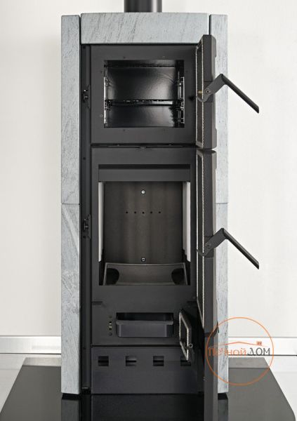 Печь Камин La Nordica Ester работает на сухой древесине. Предусмотрена встроенная система управления вторичным и третичным воздухом, которая позволяет увеличить эффективность нагрева камина почти до 80%. Основные детали изготовлены из литого чугуна. Конструкцию печи составляет три функциональные части: камеры для топки и зольника. Печь укомплектована духовым шкафом. Наружная поверхность печи-камина сделана из натурального камня.