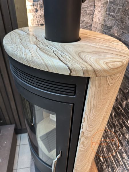 Печь камин Arctis 8 выполненна из стали.Печь оснащена системами "двойного дожига" и "чистого стекла". Первая из них оптимизирует процесс сгорания топлива и повышает тепловую эффективность печи. Вторая - препятствует оседанию сажи на внутреннюю поверхность топочного стекла, позволяя ему оставаться прозрачным. Печь Arctis развивает мощность в 8-10 кВт и способна отапливать от 160 до 200 куб. метров жилого пространства. Эта поворотная модель имеет цилиндрическую форму и облицована натуральным песчаником. В качестве топлива используются сухие дрова, длиной не более 40 см.