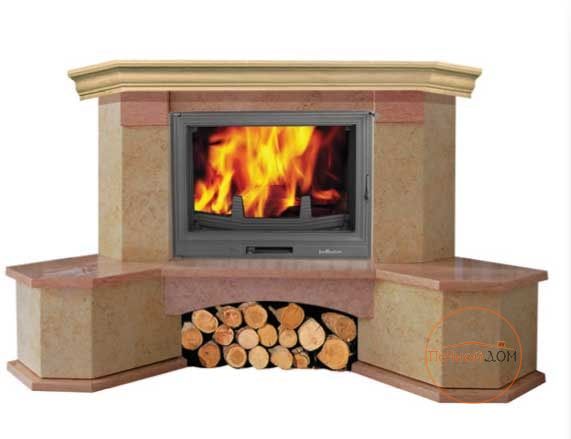 Облицовка Jabo Marmi "Alezio" (Польша) предназначена для декоративной отделки каминной топки. Облицовка изготовлена из полированного мрамора Silvia Light Yellow (оттенки бежевого) и полированного мрамора Maryolla (оттенки розового). Балка изготовлена из массива дуба. Подходящие топки серии 700 с прямым стеклом. Облицовка в пристенном или угловом исполнении.