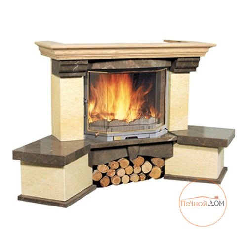 Облицовка Jabo Marmi "Capri" (Польша) предназначена для декоративной отделки каминной топки. Облицовка изготовлена из камня ретро Silvia Yellow (оттенки бежевого) и полированного мрамора Olive Brown (оттенки зелёно-коричневого). Балка изготовлена из массива дуба. Подходящие топки серии 700 с прямым стеклом. Облицовка в пристенном или угловом исполнении.