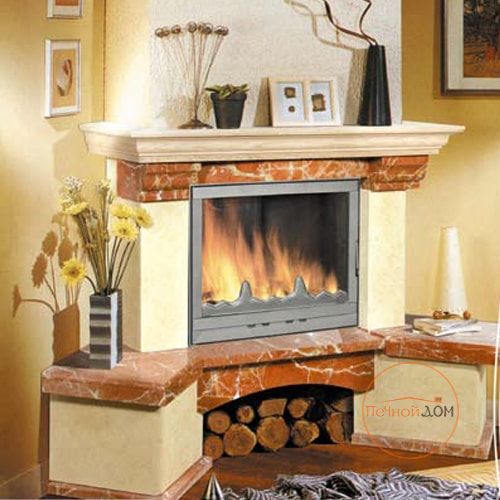 Облицовка Jabo Marmi "Florencja" (Польша) предназначена для декоративной отделки каминной топки. Облицовка изготовлена из камня ретро Silvia Light Yellow (оттенки бежевого) и полированного мрамора Rojo Alicante (оттенки красного). Балка изготовлена из массива дуба. Подходящие топки серии 700 с прямым стеклом. Облицовка в пристенном или угловом исполнении.