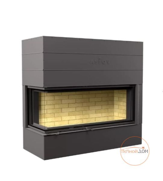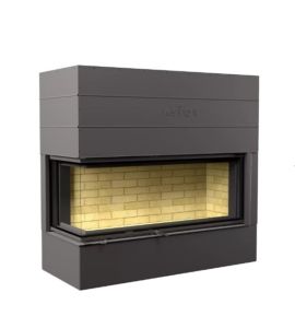Отсутствие стойки рамки между стеклами создает прекрасный вид на огонь из любой точки помещения и смотрится единым целым, а шелкография завершает обрамление очага, гармонируя с внутренним убранством топочной части.