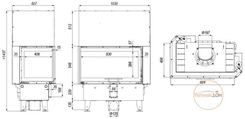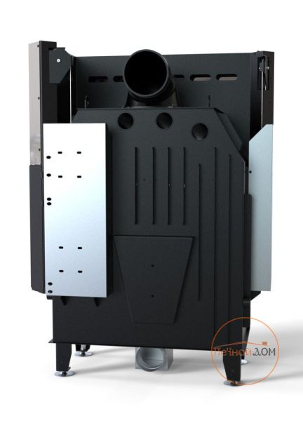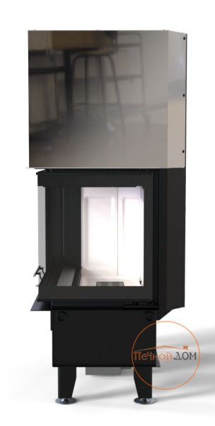 Пристенно-угловая каминная топка из стали, топка футерована керамикой (белая, черная). Способна обогреть 325 м3. Топка имеет систему вторичного дожига, чистое стекло, возможен подвод внешнего воздуха.