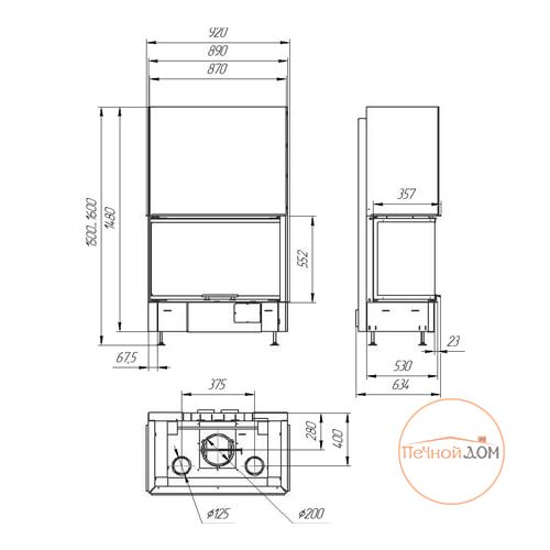 Каминные топки ДЕЛЬТА это сплав наших знаний о современных Европейских тенденциях в области создания каминных топок и требований отечественного покупателя к удобству эксплуатации, внешнему виду и надежности камина. Наши топки принесут в ваш дом атмосферу комфорта, и отлично впишутся в любой интерьер. Мы производим каминные топки из высококачественной котельной стали и наносим термостойкое лакокрасочное покрытие с антикоррозийными свойствами. Топки серии ДЕЛЬТА имеют следующие конструктивные особенности: Топочная камера футерована современным материалом, литьевым шамотом бежевого или черного цвета (по желанию покупателя) и надежно защищает металлические детали корпуса топки от перегрева. Жаропочное стекло из Японии способно выдерживать температуру до 750 С. Система тепловой разводки имеет два встроенных патрубка диаметром 125 мм для подключения системы распределения теплого воздуха в смежные помещения и позволяет увеличить площадь обогреваемых помещений. Система забора воздуха извне, имеет два встроенных патрубка диаметром 125 мм для подключения забора воздуха на горение из соседнего помещения, улицы, подвала, и повышает надежность работы топки. Система очистки стекла эффективно очищает жаропрочное стекло и позволяет любоваться красотой огня. Система вторичного дожега увеличивает КПД топки и позволяет экономить дрова. Встроенная шиберная заслонка позволяет увеличивать/уменьшать сечение дымового канала и регулирует мощность топки. Ребра жесткости по всему корпусу топки и встроенные в дымосборник тепловые каналы позволяют снимать больше тепла и отдавать его в помещение путем конвекции. Высокий дымосборник и пламярассекатель не позволяют дымовым газам попадать в помещение при открывании дверцы. Бесшумная и надежная тросовая система с противовесом и жаропрочными подшипниками, позволяет открывать дверцу топки вверх и производить закладку дров в топочную камеру. Для оптимизации процессов горения все регулировки подачи воздуха на систему первичное горение, систему очистки стекла и встроенную шиберную заслонку производятся специальным ключом «ХОЛОДНАЯ РУКА». Под чугунной колосниковой решеткой в днище топки, находится большой зольный ящик, который удобно вынимается. Устойчивые, регулируемые по высоте ножки, позволяют при монтаже установить топку по уровню.