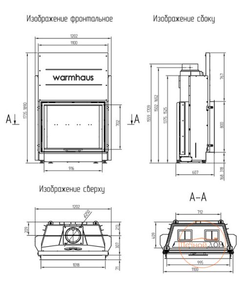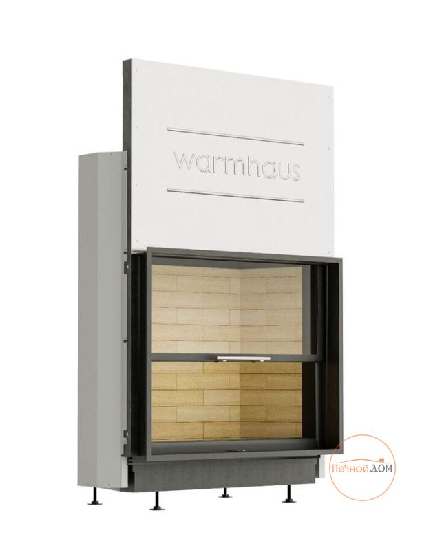 Warmhaus FLAT 100/80h - премиальная стальная топка с прямым стеклом и подъёмным механизмом дверцы.