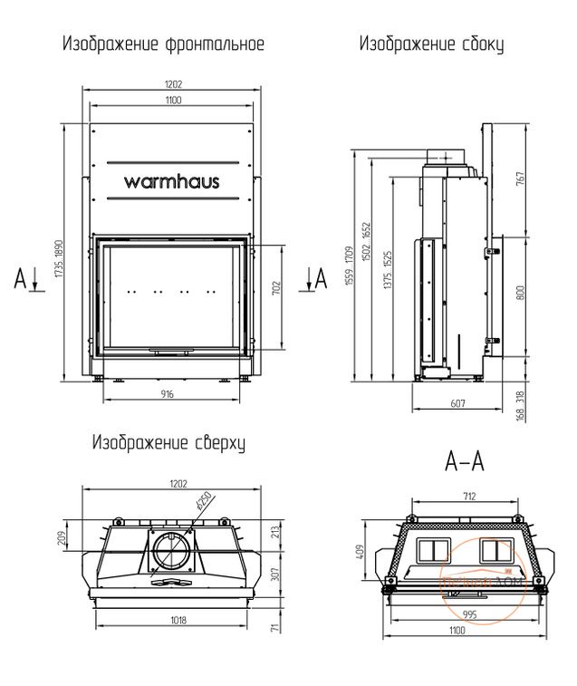 Каминная топка прямая со стеклом FLAT 100/80h / Warmhaus Fireplace Company (Россия)