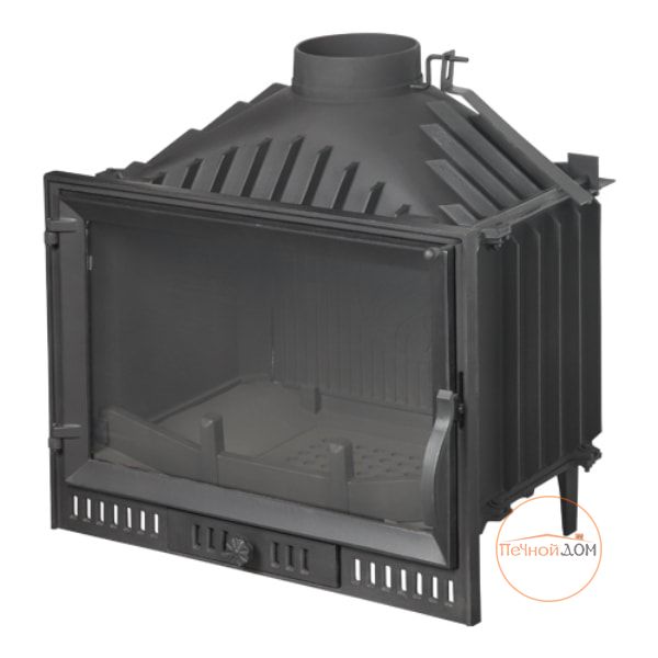 Не дорогая каминная кассета с тепловой мощностью 14 кВт, которая отопит до 110 квадратных метров. КПД топки 75%. Топка выполнена из качественного чугуна и имеет шиберную заслонку. Загрузка дров фронтальная. Диаметр дымохода 180 мм. Расположение дымохода сверху. Отделка антрацит. Размер стекла 580х360х4 mm. Гарантия 5 лет.