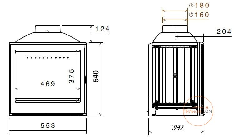 Каминная топка L 5 RL два боковых стекла (LISEO)