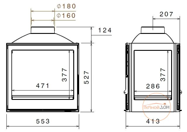 Панорамная топка со стеклами с четырех сторон. С дымосборником.