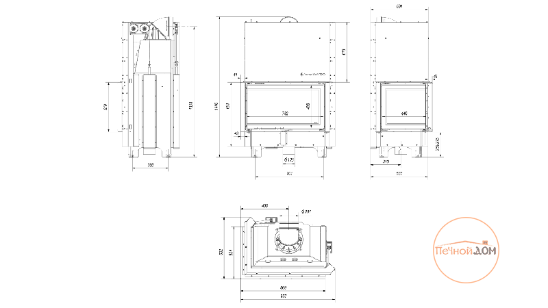 | Ширина видимой части топки | 782 мм |