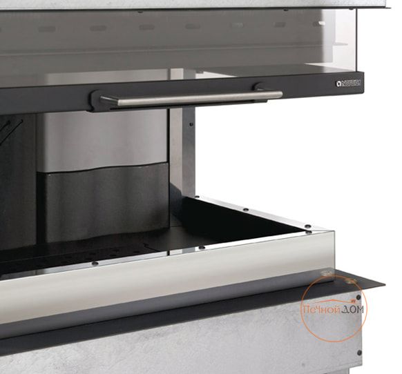 Дверца отделения топки имеет вставку из качественной стеклокерамики, которая поддается воздействию высоких температур. Очищение стеклянной вставки обеспечивается благодаря подаче воздуха непосредственно на стекло.