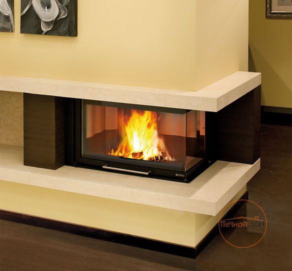 Каминная топка Monoblocco 800 Angolo – уникальное оборудование для снабжения теплом жилых помещений. Данное устройство предназначается для каминной установки. Такое изделие изготавливается заводом итальянской компании "La Nordica". Топка модели Monoblocco 800 Angolo имеет большое количество особенностей, одна из которых визуальна – угловая форма стекла. Такая модификация предоставляет отличную возможность любоваться видом огня с двух сторон. Также в этой модели дверца открывается с помощью механизма поднятия дверцы вверх. Данная система является абсолютно бесшумной.