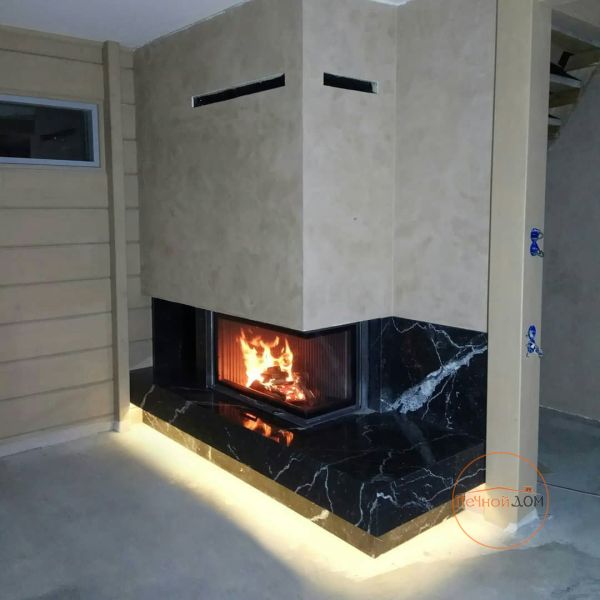 Для уменьшения сопротивления в дымовом канале и улучшения работы топливника, обязательно применяйте розжиг сверху, когда растапливаете холодный камин.