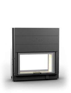 Две дверцы с прямым стеклом. Пространная, сквозная модель, великолепно вписывается в межкомнатные перегородки, для созерцания огня как из гостиной, так и из спальни или кабинета, служит отличной основой, для создания центрального (островного) камина.