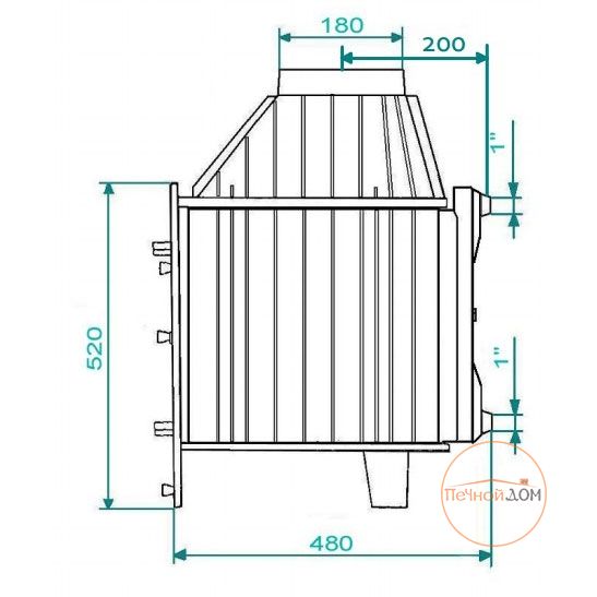 Каминная топка Ferguss FG-20W с шибером предназначена для подключения к центральному отоплению. Все элементы топки легко заменимы.