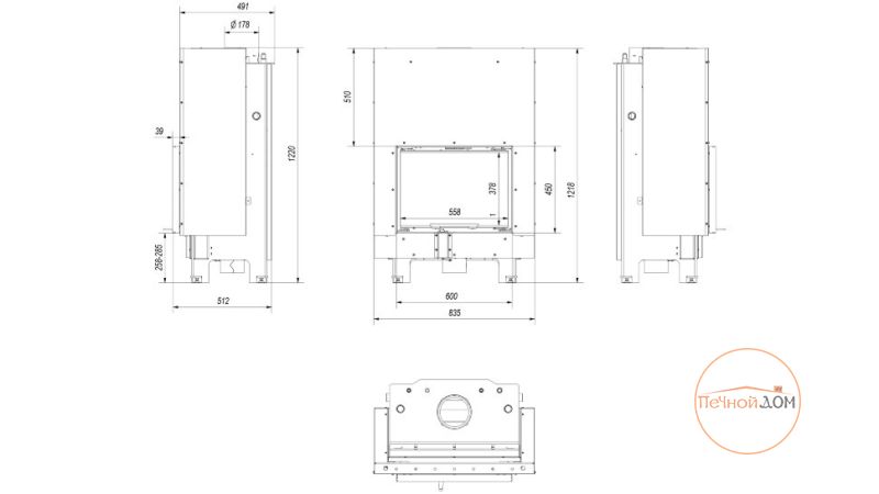 | Опции | вторичный дожиг, встроенные ножки, система чистое стекло, подача воздуха извне, декоративное исполнение, змеевик(для безопасности вод.контура) |