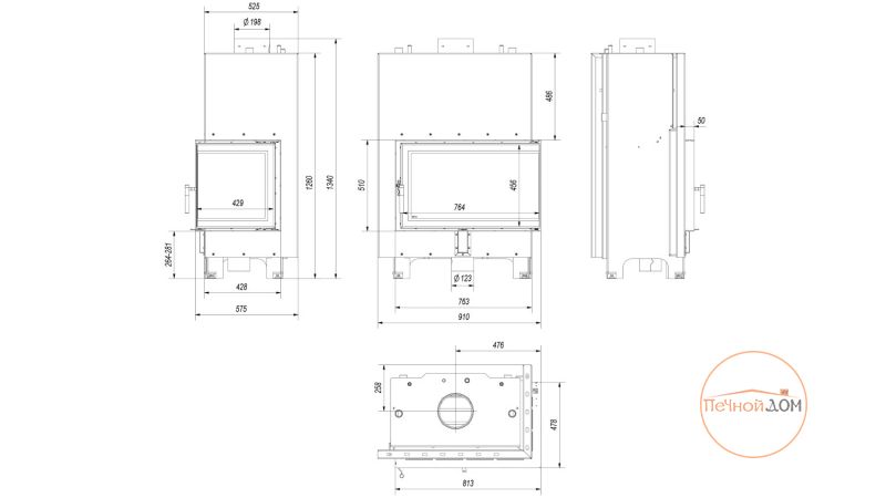 | Опции | вторичный дожиг, встроенные ножки, система чистое стекло, подача воздуха извне, декоративное исполнение, змеевик(для безопасности вод.контура) |