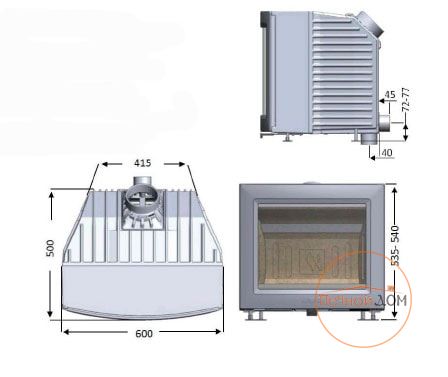 2. Топочная камера футерована вермикулитом. Между стенками топки и вермикулитом имеются воздушные каналы для подогрева воздуха поступающего в топочную камеру.