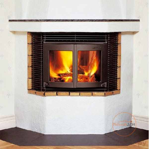 Шведская каминная топка Sk 203 имеет оригинальные распашные дверки со сферическими стеклами. Такой вариант окрывания дверок может быть удачно обыгран в каминах разнообразного дизайна.