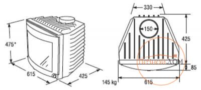 Чугунный корпус топки имеет такие практичные конструктивные элементы как, решетка для нагретого воздуха, закрывающая решетка.