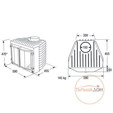 | Диаметр дымохода, мм | 150 |