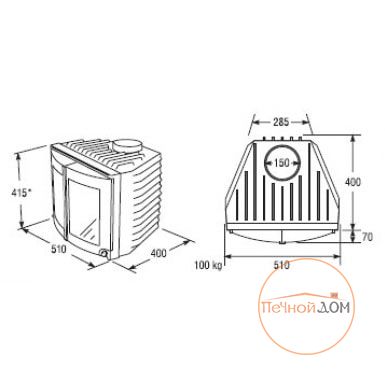 Чугунный корпус топки имеет такие практичные конструктивные элементы как, решетка для нагретого воздуха, закрывающая решетка.