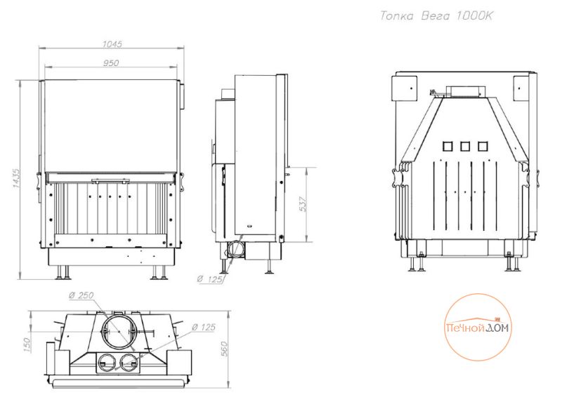 Топки ВЕГА это сплав наших знаний о современных Европейских тенденциях в области создания каминных топок и требований отечественного покупателя к удобству эксплуатации, внешнему виду и надежности камина. Каминные топки Вега принесут в ваш дом атмосферу комфорта, и отлично впишутся в любой интерьер. Мы производим каминные топки из высококачественной котельной стали и наносим термостойкое лакокрасочное покрытие с антикоррозийными свойствами. Топки серии ВЕГА имеют следующие конструктивные особенности: Топочная камера футерована современным материалом, литьевым шамотом бежевого или черного цвета (по желанию покупателя) и надежно защищает металлические детали корпуса топки от перегрева. Жаропочное стекло из Японии способно выдерживать температуру до 750 С. Система тепловой разводки имеет два встроенных патрубка диаметром 125 мм для подключения системы распределения теплого воздуха в смежные помещения и позволяет увеличить площадь обогреваемых помещений. Система забора воздуха извне, имеет два встроенных патрубка диаметром 125 мм для подключения забора воздуха на горение из соседнего помещения, улицы, подвала, и повышает надежность работы топки. Система очистки стекла эффективно очищает жаропрочное стекло и позволяет любоваться красотой огня. Система вторичного дожега увеличивает КПД топки и позволяет экономить дрова. Встроенная шиберная заслонка позволяет увеличивать/уменьшать сечение дымового канала и регулирует мощность топки. Ребра жесткости по всему корпусу топки и встроенные в дымосборник тепловые каналы позволяют снимать больше тепла и отдавать его в помещение путем конвекции. Высокий дымосборник и пламярассекатель не позволяют дымовым газам попадать в помещение при открывании дверцы. Бесшумная и надежная тросовая система с противовесом и жаропрочными подшипниками, позволяет открывать дверцу топки вверх и производить закладку дров в топочную камеру. Для оптимизации процессов горения все регулировки подачи воздуха на систему первичное горение, систему очистки стекла и встроенную шиберную заслонку производятся специальным ключом «ХОЛОДНАЯ РУКА». Под чугунной колосниковой решеткой в днище топки, находится большой зольный ящик, который удобно вынимается. Устойчивые, регулируемые по высоте ножки, позволяют при монтаже установить топку по уровню.