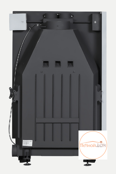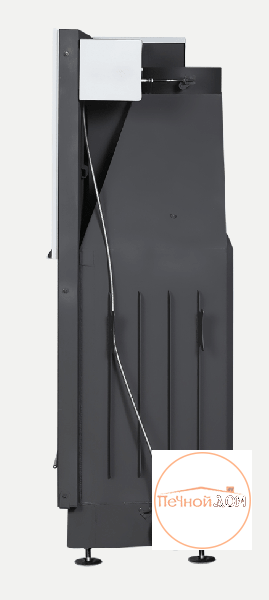 Встроенная шиберная заслонка позволяет увеличивать/уменьшать сечение дымового канала и регулирует мощность топки. Ребра жесткости по всему корпусу топки и встроенные в дымосборник тепловые каналы позволяют снимать больше тепла и отдавать его в помещение путем конвекции. Высокий дымосборник и пламярассекатель не позволяют дымовым газам попадать в помещение при открывании дверцы. Бесшумная и надежная тросовая система с противовесом и жаропрочными подшипниками, позволяет открывать дверцу топки вверх и производить закладку дров в топочную камеру. Для оптимизации процессов горения все регулировки подачи воздуха на систему первичное горение, систему очистки стекла и встроенную шиберную заслонку производятся специальным ключом «ХОЛОДНАЯ РУКА». Под чугунной колосниковой решеткой в днище топки, находится большой зольный ящик, который удобно вынимается. Устойчивые, регулируемые по высоте ножки, позволяют при монтаже установить топку по уровню.
