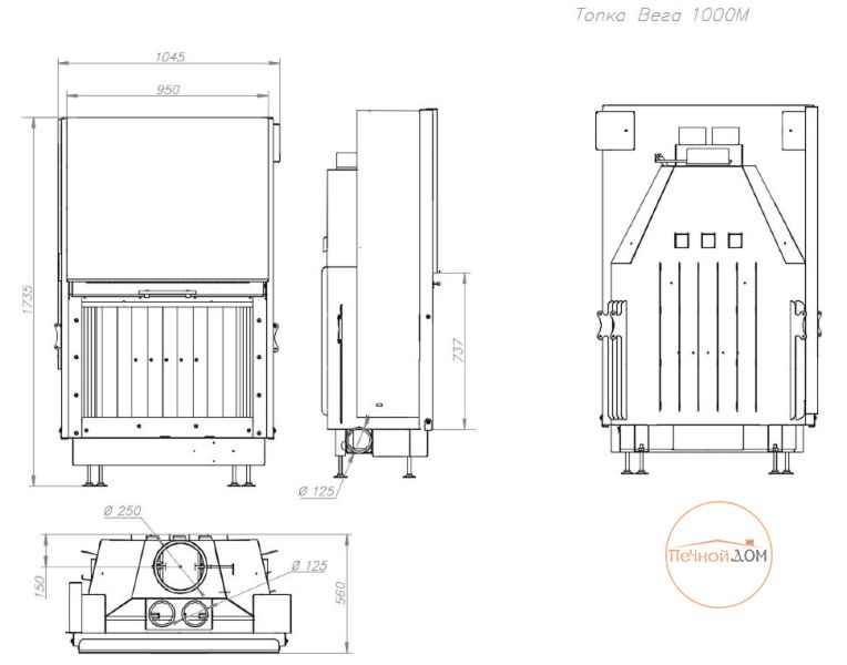 Топки серии ВЕГА имеют следующие конструктивные особенности: Топочная камера футерована современным материалом, литьевым шамотом бежевого или черного цвета (по желанию покупателя) и надежно защищает металлические детали корпуса топки от перегрева. Жаропочное стекло из Японии способно выдерживать температуру до 750 С. Система тепловой разводки имеет два встроенных патрубка диаметром 125 мм для подключения системы распределения теплого воздуха в смежные помещения и позволяет увеличить площадь обогреваемых помещений. Система забора воздуха извне, имеет два встроенных патрубка диаметром 125 мм для подключения забора воздуха на горение из соседнего помещения, улицы, подвала, и повышает надежность работы топки. Система очистки стекла эффективно очищает жаропрочное стекло и позволяет любоваться красотой огня. Система вторичного дожега увеличивает КПД топки и позволяет экономить дрова.
